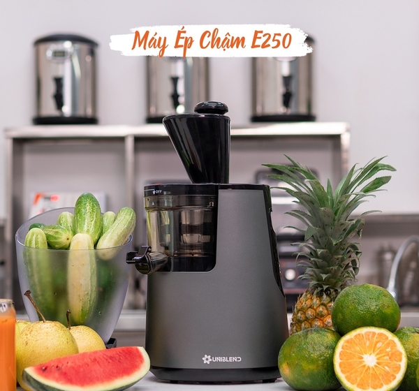 Máy ép chậm Uniblend E250 là thiết bị hoàn hảo để tạo ra những ly nước ép với chất lượng tốt, kiệt bã và giữ lại được tất cả dinh dưỡng và những gì thơm ngon nhất từ các loại rau củ, trái cây.