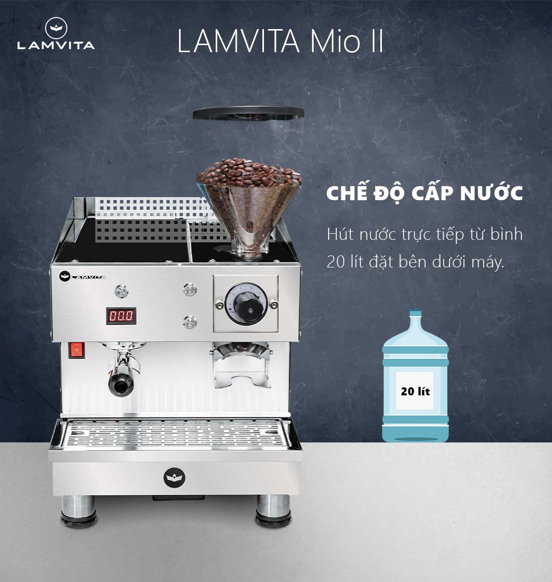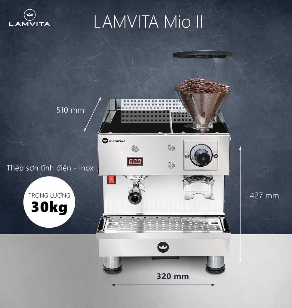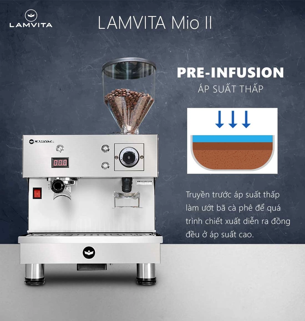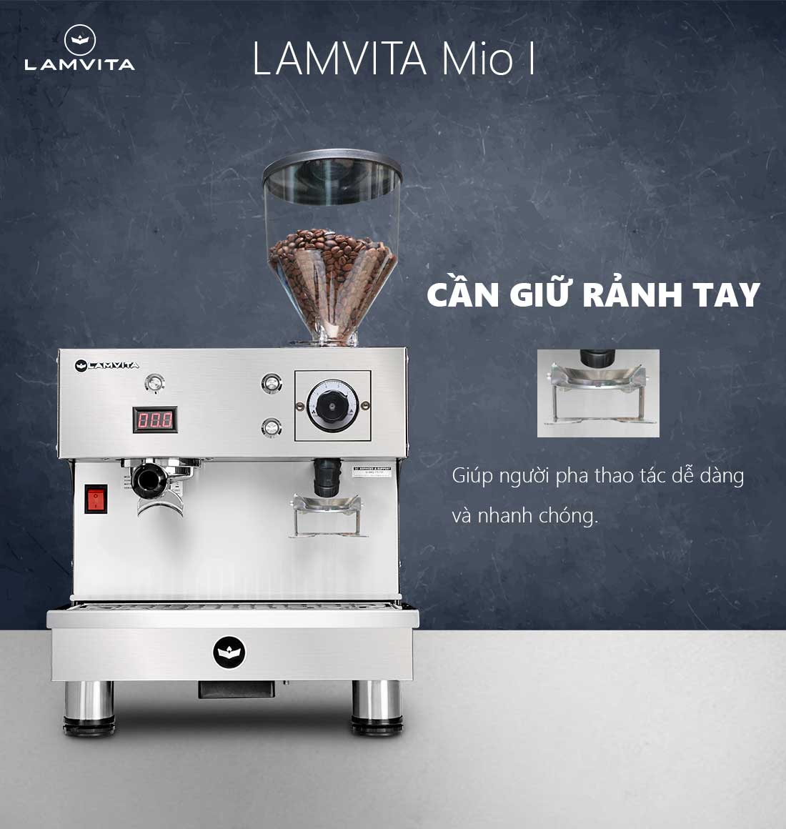 Sự kết hợp hoàn hảo giữa máy pha cà phê và máy xay trong cùng một thiết bị mang đến cho LAMVITA Mio sự linh hoạt và tinh gọn, điều mà các mô hình cà phê to go luôn tìm kiếm.