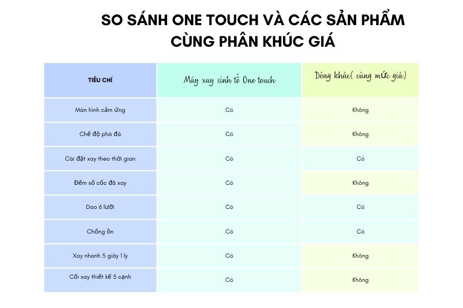 8. So sánh máy xay Uniblend One Touch so với các sản phẩm cùng phân khúc giá